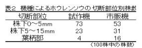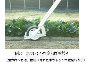 | [成果情報名] | 軟弱野菜の簡易根切り機 |
