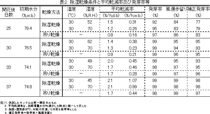 | [キーワード] | 採種タマネギ、除湿乾燥、平均乾減率、発芽率 |