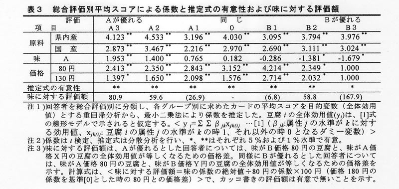 | [成果情報名] | コンジョイント分析と食味試験を併用した豆腐の消費者選好 |
