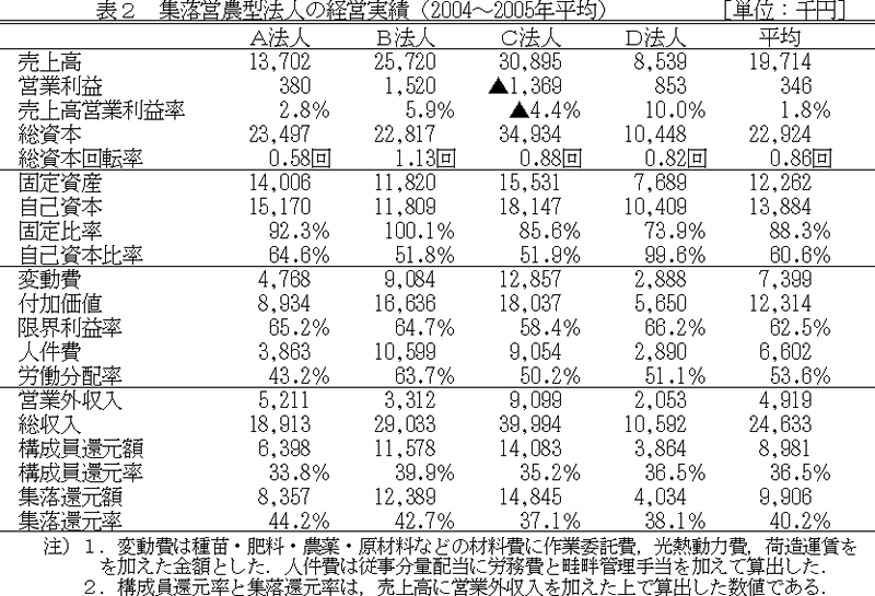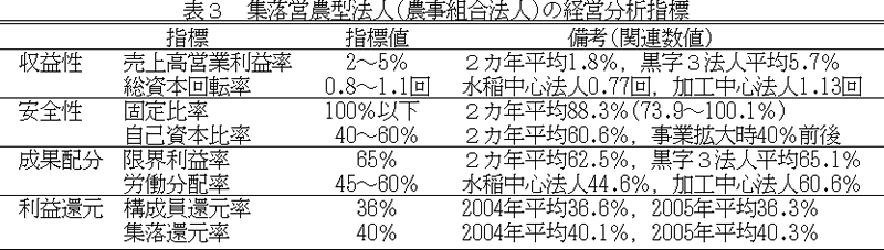 | [成果情報名] | 従事分量配当を行う集落営農型法人の経営指標値 |