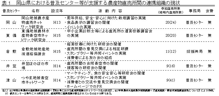 | [キーワード] | 農産物直売所、直売所間の連携組織、普及センター等の支援 |