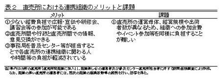 | [成果情報名] | 普及センター等が支援する農産物直売所間の連携組織のメリットと課題 |
