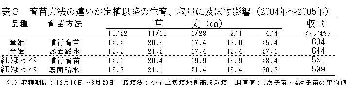 | [成果情報名] | イチゴの湛水式底面給水育苗技術 |