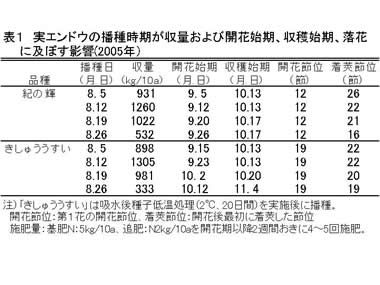 | [成果情報名] | 実エンドウの夏まき年内どり栽培における播種適期 |