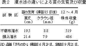 | [成果情報名] | イチゴ育苗における不織布灌水法 |