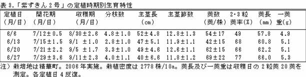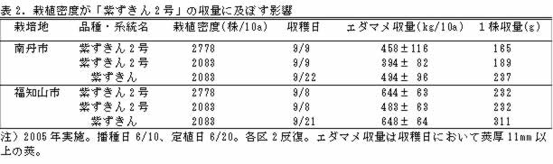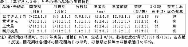 | [成果情報名] | 丹波黒大豆系エダマメ品種「紫ずきん2号」の特性 |