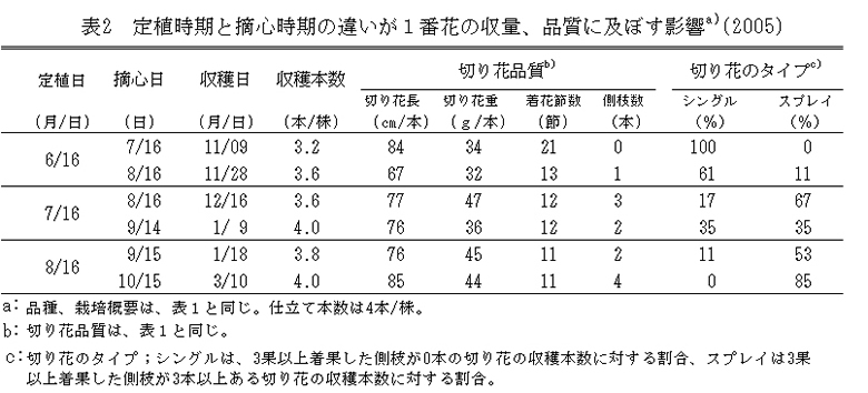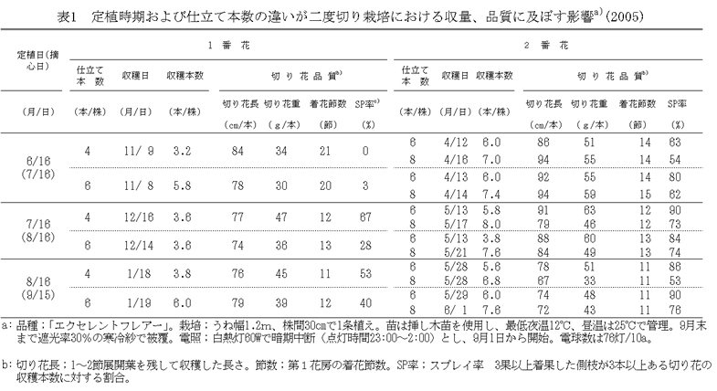 | [キーワード] | ヒペリカム、二度切り栽培、摘心、仕立て、電照 |