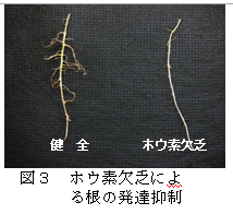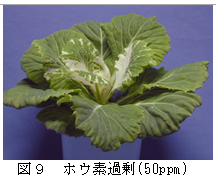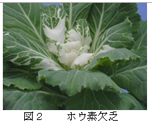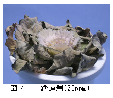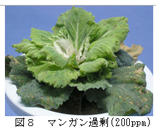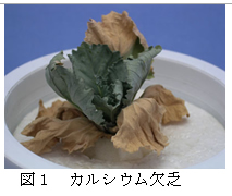 | [要約] | ポットハボタンのカルシウム欠乏では生育不良と下位葉の枯死、ホウ素欠乏では上位葉の生育不良、 根の発達抑制が認められる。マグネシウム欠乏では下位葉の黄斑、鉄欠乏では上位葉のクロロシスが顕著で ある。マンガン過剰では褐色小粒斑点が発生する。 |