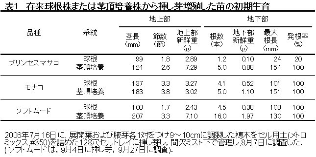 | [成果情報名] | ダリア茎頂培養系統の挿し芽による効率的な増殖技術 |