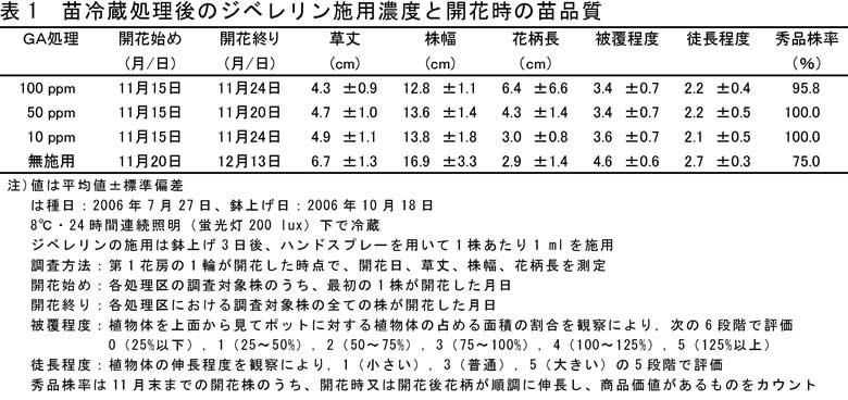 | [成果情報名] | 苗冷蔵によるプリムラ・マラコイデスの開花促進技術 |