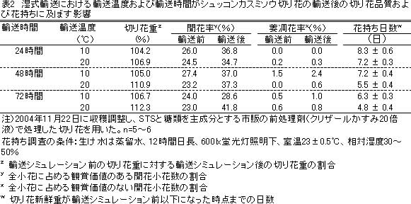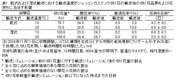 | [成果情報名] | シュッコンカスミソウ切り花の湿式輸送による品質保持効果 |