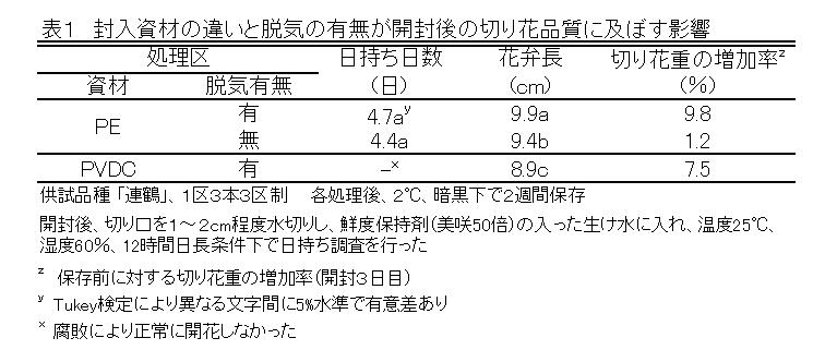 | [成果情報名] | 脱気・密封保存中における切り花ボタンの呼吸とエチレン発生量 |