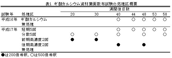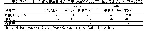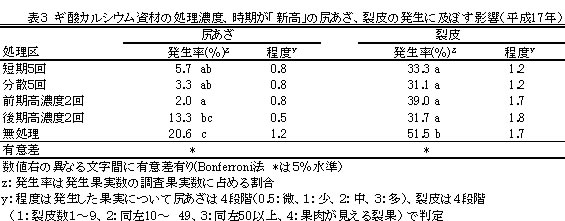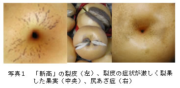 | [成果情報名] | ギ酸カルシウム資材の葉面散布によるナシ「新高」の尻あざ症、裂皮の抑制 |