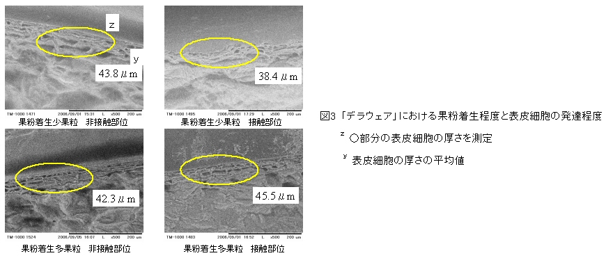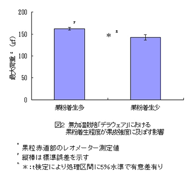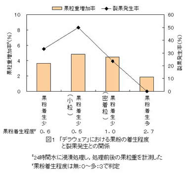 | [成果情報名] | ブドウ「デラウェア」の裂果に及ぼす果粉着生の影響 |