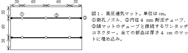 | [要約] | 高圧空気を微量吐出するノズルを装着したマットを床に敷き、その上に堆肥化原料を堆積して 通気をすれば、切り返しが不要なので、野外でシートで覆った堆肥化にも利用できる。 |