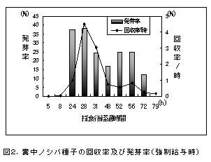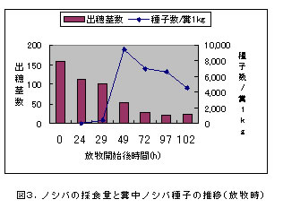 | [要約] | 結実期のノシバ草地に牛を放牧し種子を採食させた後、新規造成地で放牧することで、種子を含む 糞から発芽したノシバが定着する。被度拡大は頭数増、複数回の放牧、複数年度での実施により促進。採食に 加え湿潤寒冷状態で休眠打破の効果が高まる。 |