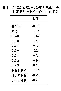 | [要約] | 市場流通豚の脂肪について、皮下脂肪や筋間脂肪と相関の高い腎臓周囲脂肪を用いて締まりを客観的に 評価し、市場での評価が良い脂肪品質を推定する。 |