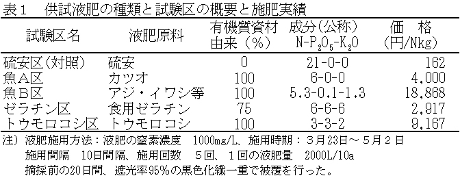 | [成果情報名] | 有機質資材由来液肥を用いた茶園の点滴施肥の効果 |