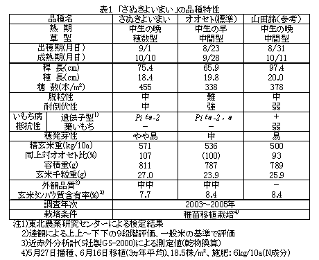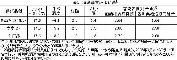 | [成果情報名] | 酒造原料用水稲品種「さぬきよいまい」の育成 |