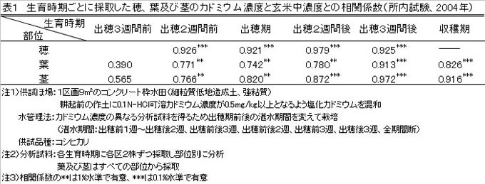 | [成果情報名] | 収穫前分析による玄米のカドミウム濃度の予測 |