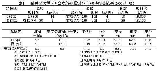 | [要約] | 砂地畑ニンジン栽培において、基肥に被覆肥料を施用し、追肥を有機入り化成肥料で1回行うことにより、4回追肥を行う慣行に比べて減肥が可能で、省力化が図られるとともに、窒素の溶脱も抑制できる。 |
