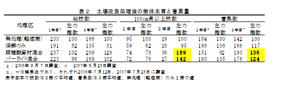 | [成果情報名] | ナシ「幸水」の萎縮病軽症樹に対する土壌改良による樹勢低下の軽減効果 |