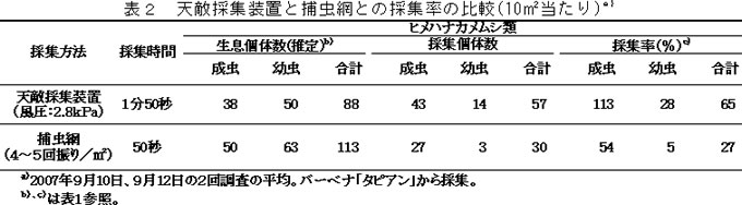 | [成果情報名] | アザミウマ類の土着天敵ヒメハナカメムシ類採集のための天敵採集装置の開発 |