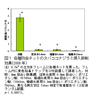 | [キーワード] | 極細糸、防虫ネット、0.4mm目合い、タバココナジラミ、バイオタイプQ、TYLCV |