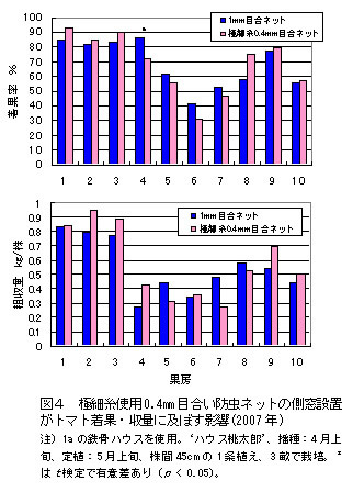 | [成果情報名] | 極細糸防虫ネットによる施設トマトのタバココナジラミ侵入抑制 |
