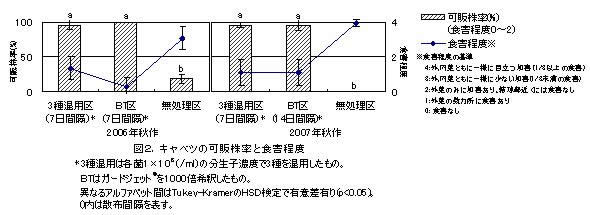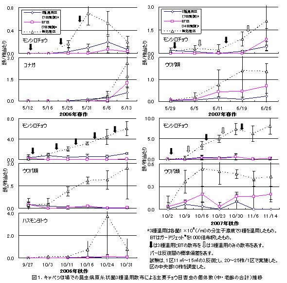 | [成果情報名] | 昆虫病原糸状菌3種の混用散布はBT剤と同等の防除効果がある |