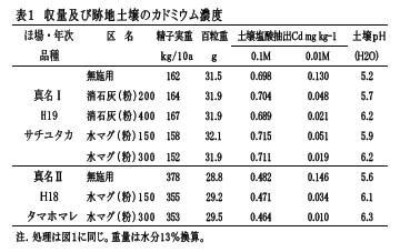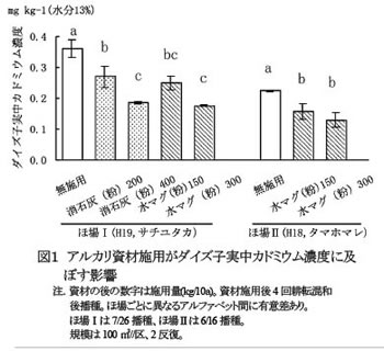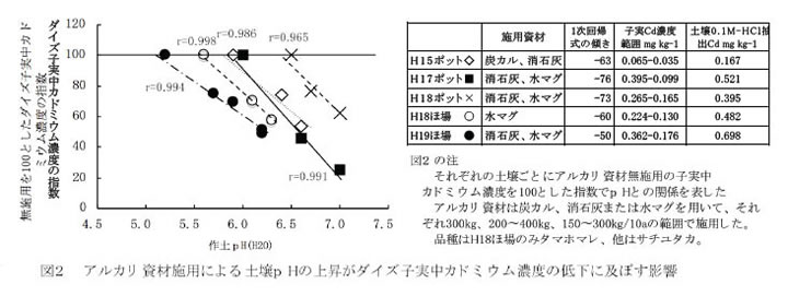 | [成果情報名] | アルカリ資材施用によるダイズ子実中カドミウム濃度低下技術 |