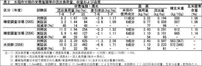 | [成果情報名] | 環境保全型稲作技術の面的な取り組みによる流出負荷低減効果の定量的評価 |