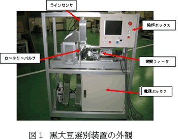 | [成果情報名] | 黒大豆のへそ部と損傷部を区別する選別機 |