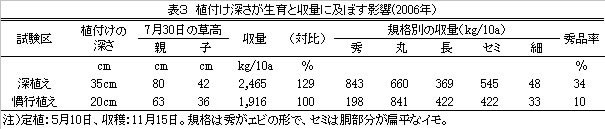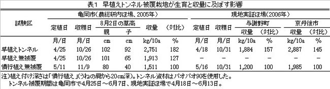 | [成果情報名] | 早植えトンネル被覆栽培及び「深植え」によるエビイモの増収技術 |