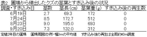 | [成果情報名] | 茎葉収穫を目的としたクズの栽培法 |