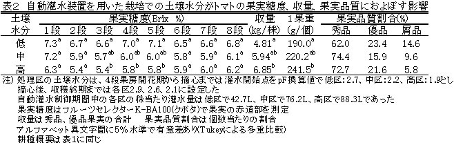 | [成果情報名] | 自動灌水装置を用いた水分制御による半促成栽培トマトの高糖度化 |