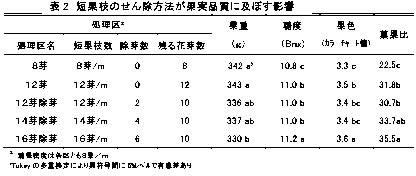 | [成果情報名] | ナシ「ゴールド二十世紀」高糖度果実安定生産のための短果枝せん除程度 |