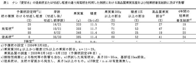 | [成果情報名] | ナシ「愛甘水」の高品質果実生産のための側枝育成法 |