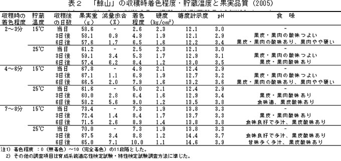 | [成果情報名] | スモモ新品種「鯨山」の交配親和性及び収穫適期 |