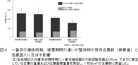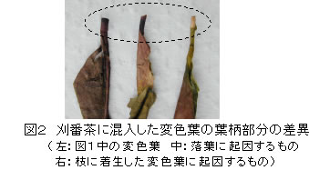 | [成果情報名] | 一番茶後の刈番茶に混入する黄褐色の変色葉の発生要因 |