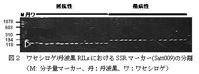 1.丹波黒以外のダイズ品種にワセシロゲの本病抵抗性遺伝子を導入する場合、交配親との各マーカー(Satt009とSatt530)の多型を確認し、マーカー選抜の適応性を検討する必要がある。