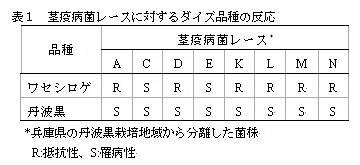 1.兵庫県に分布する茎疫病菌レースA、D、K、L、M及びNに抵抗性を示すワセシロゲと丹波黒(罹病性品種)(表1)を交配して得られるF7世代の組換え自殖系(RILs)(94系統)を供試する。