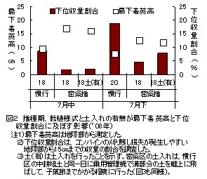 2.密条播で問題となる溝・畦肩部分の雑草防除には、土入れ作業に伴う中耕が有効であり、同時に畦中央部も土入れによる除草効果が期待できる。
