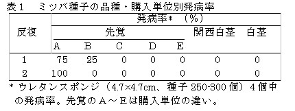 | [成果情報名] | ミツバ立枯病防除のための種子温湯消毒 |