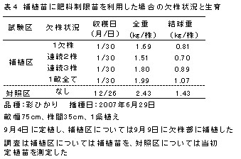 4.欠株発生時、速やかに補植し、液肥施用等で生育を促進することが望ましい。