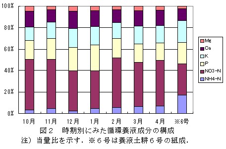 3.養液土耕6号を用いた場合、培養液の組成の乱れは特に見られない(図2)。