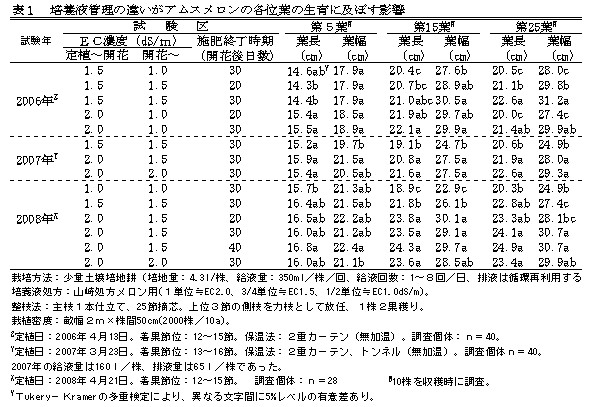 | [成果情報名] | 少量土壌培地耕における無加温半促成アムスメロンの培養液濃度管理 |