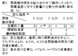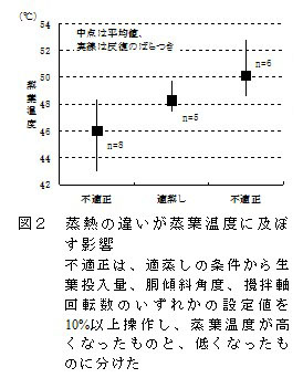 | [要約] | 蒸機の操作条件を設定するために必要な生葉の熟度等の判定には、生葉の粗繊維(ここでは灰分を含む中性デタージェント繊維)が、また、蒸葉温度は、蒸熱状態を判断し蒸機の操作に反映させる指標として利用でき、生葉投入量との関連が強い。 |