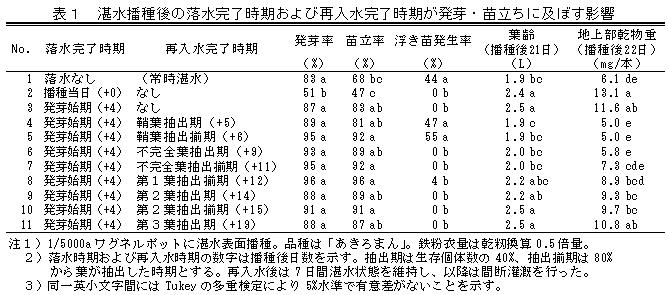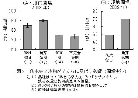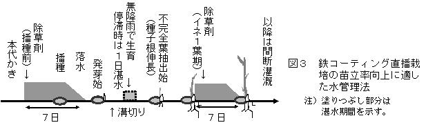 | [成果情報名] | 水稲鉄コーティング直播栽培において高い苗立率が得られる水管理法 |