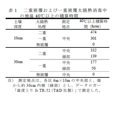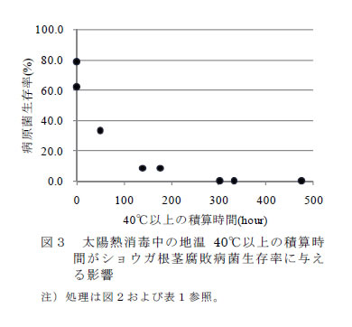 | [成果情報名] | 施設における太陽熱消毒による土壌中ショウガ根茎腐敗病菌の殺菌効果 |